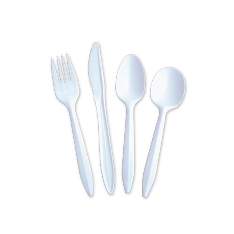 Cucharas, tenedores, cuchillos y cucharas tenedores de plástico.