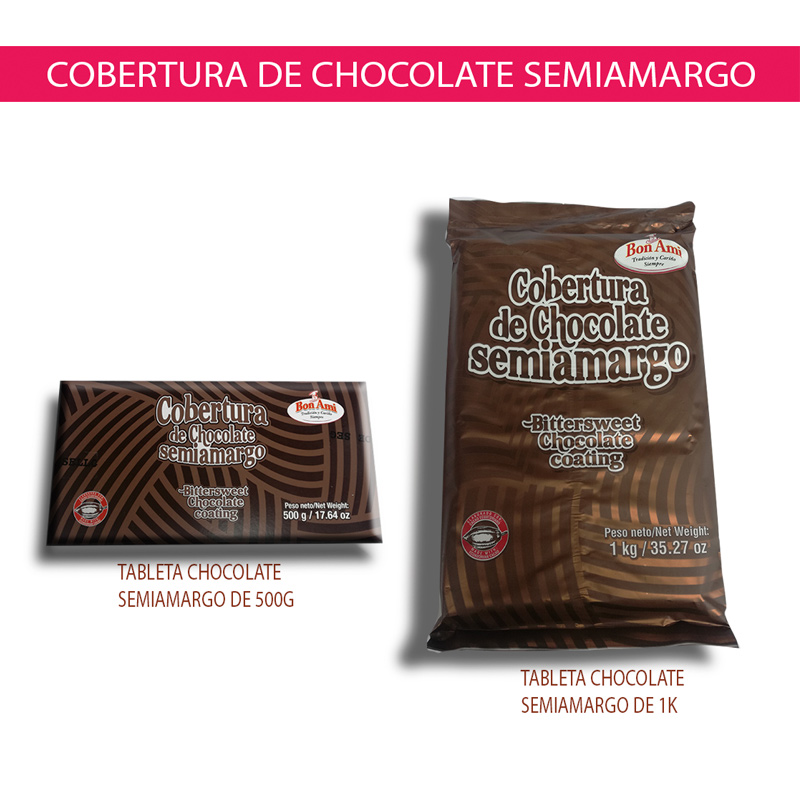 Tableta de chocolate negro semiamargo de 500 gramos y 1 kilo.