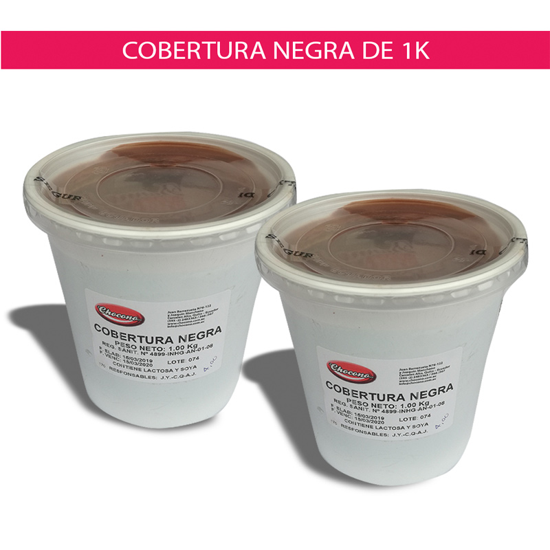 Tarrinas de cobertura negra de 1 kilo.