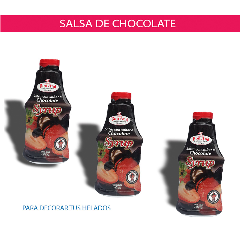 Salsa de chocolate para decoración de helados.